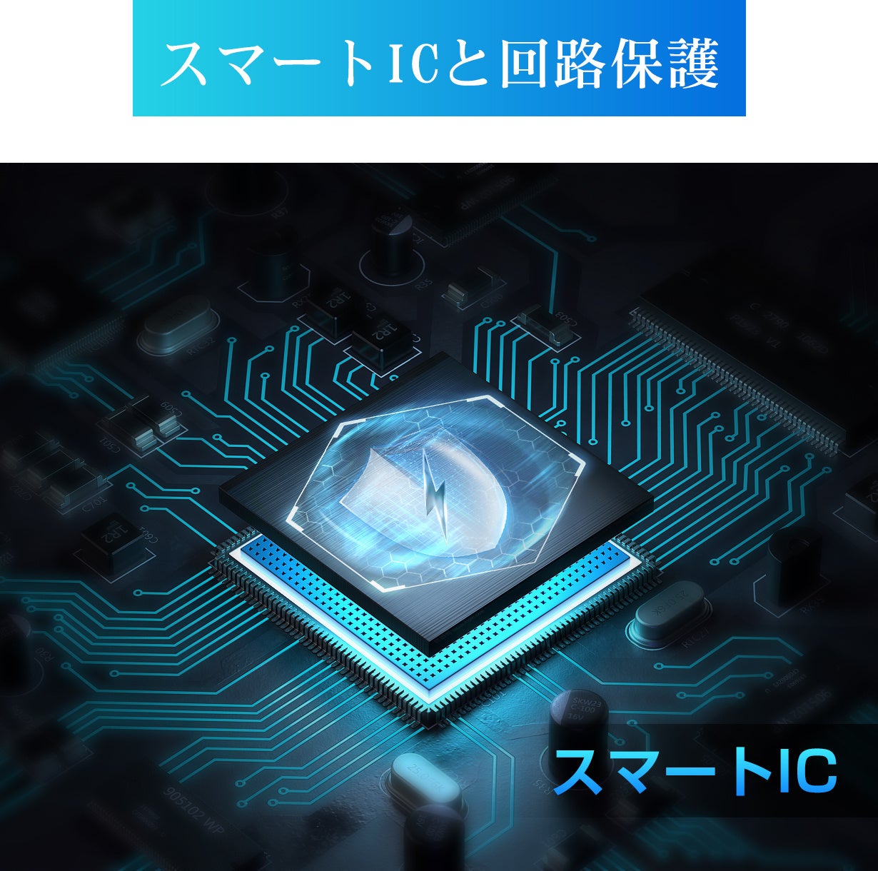 HP8-Aには充電管理チップを搭載しており、本体に接続された端末を自動的に検知し、デバイスの機種ごとに最適なスピードでの充電を可能にします。