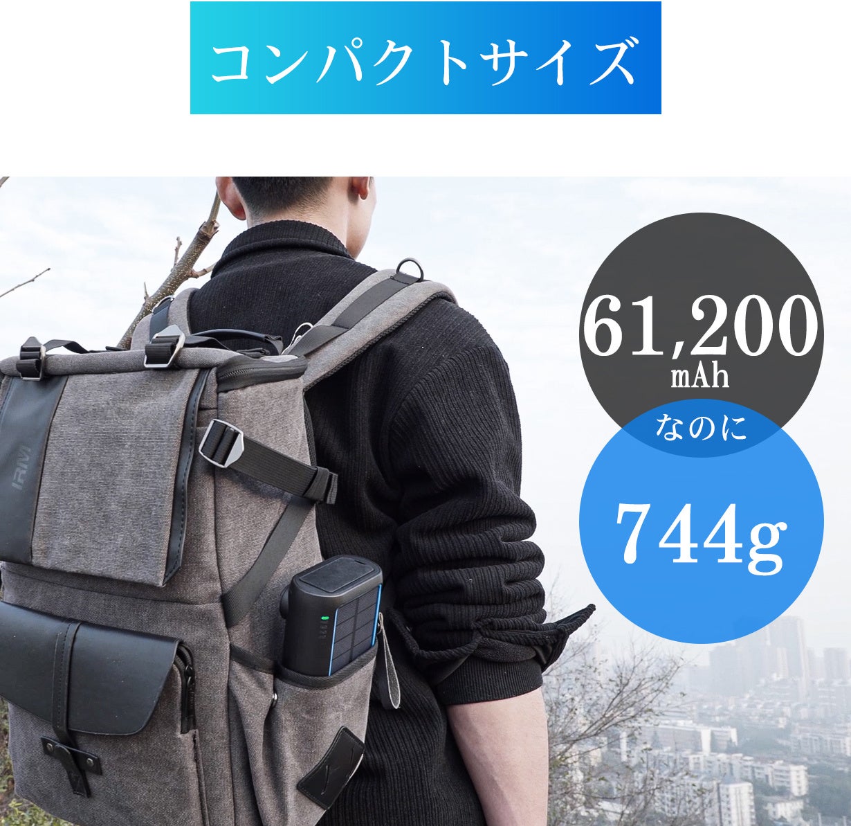 61200mAh大容量で長時間の使用が可能!登山・ハイキング・日帰り旅行などに最適
