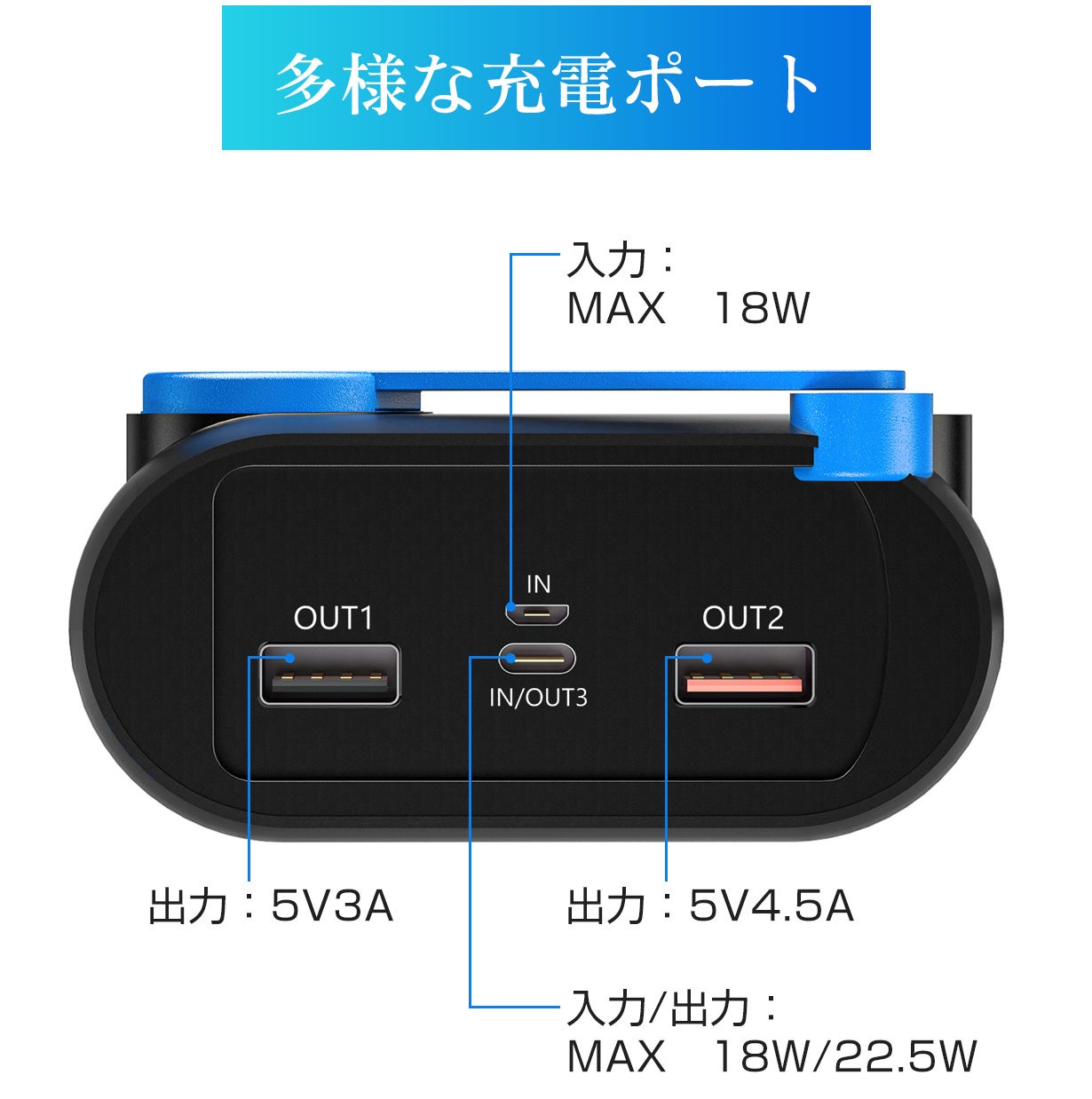 TYPE-Cポート:PD2.0/PD3.0、QC2.0/QC3.0、FCP/AFC SFCP MTK PE+1.1&2.0充電規格に対応、最大出力22.5W
