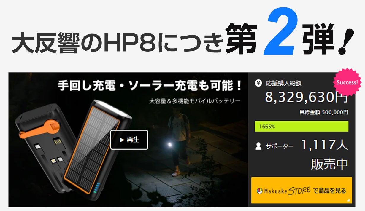 本日、3月17日(金)より、当社商品「HP8-Aソーラーバッテリー」がMakuakeにて応援購入を開始致します!