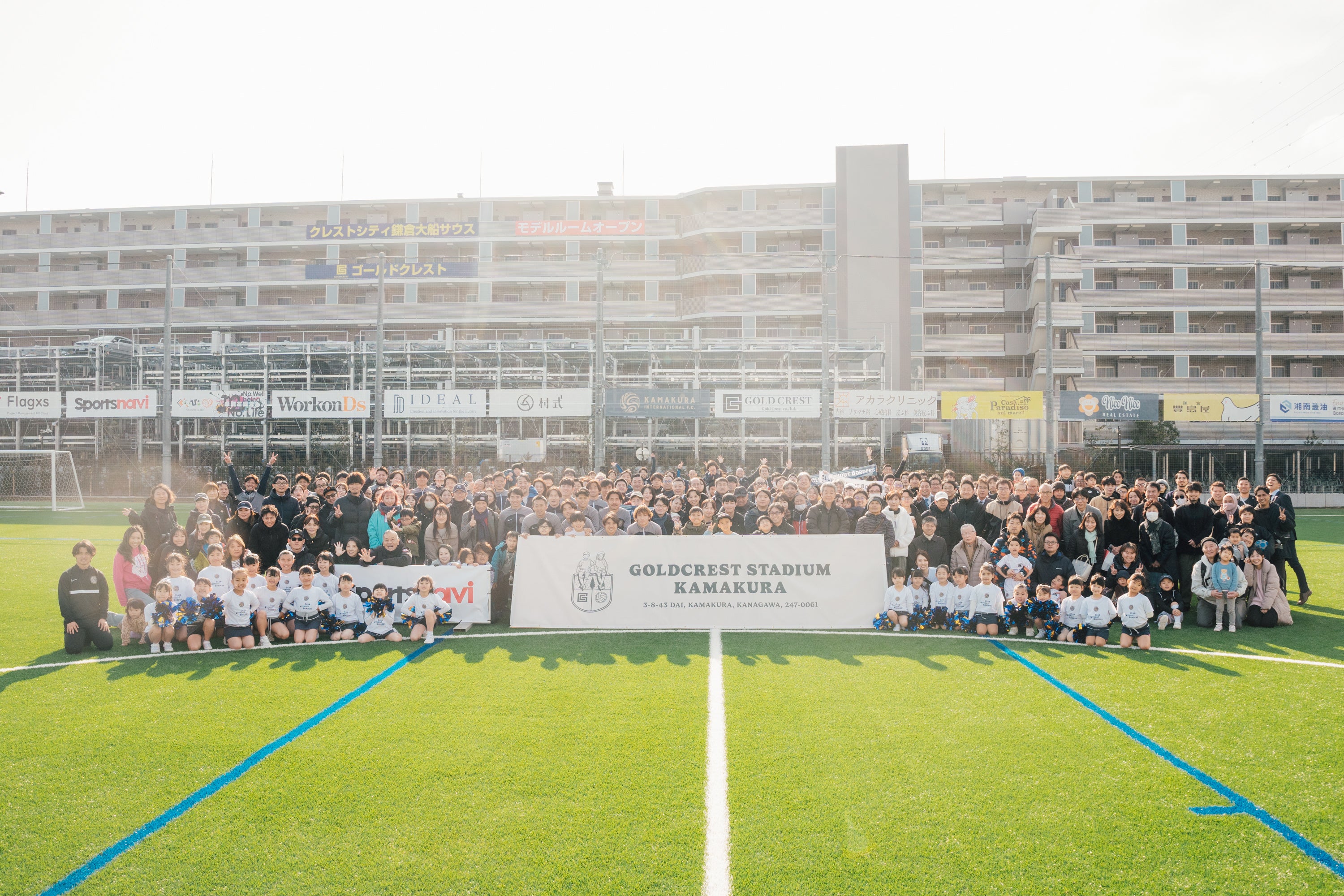 鳩スタが2024年9月に惜しまれつつ閉場した後、2025年1月25日に「クレスタ」がグランドオープン。2024年夏に実施したクラウドファンディングでは、「鳩スタ」をご利用いただいていた地域の皆様や、鎌倉インテルの活動を評価・応援いただいている企業様など多くの方にお力添えいただき、目標額の1億円を超える支援が集まり、第二のスタジアムが誕生しました。