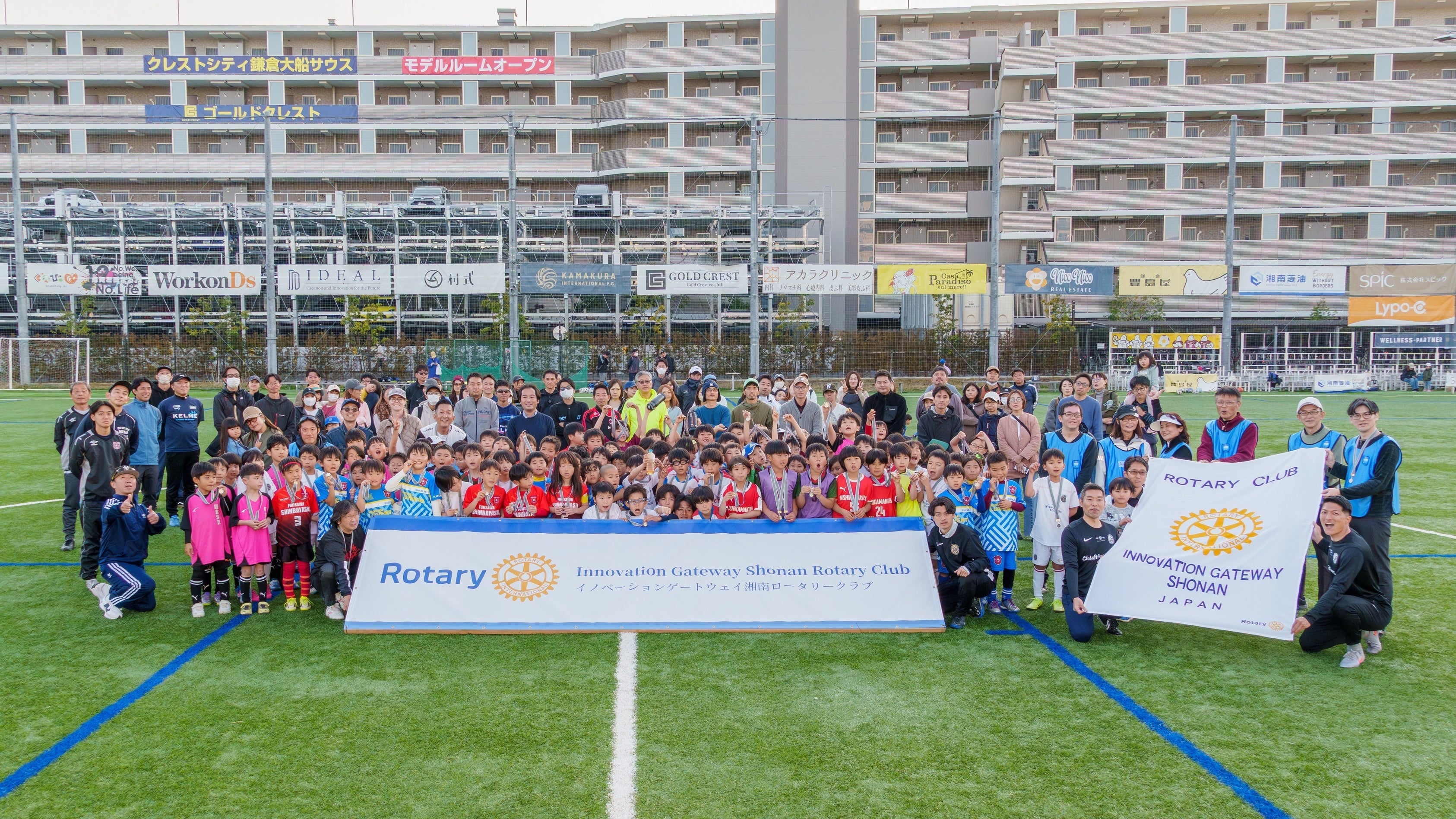本大会は、イノベーションゲートウェイ湘南ロータリークラブ様のご協賛のもと、藤沢市・鎌倉市のサッカーチームが集い、藤沢・鎌倉の次世代交流、子どもたちと保護者の交流を目的として実施されました。