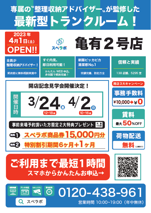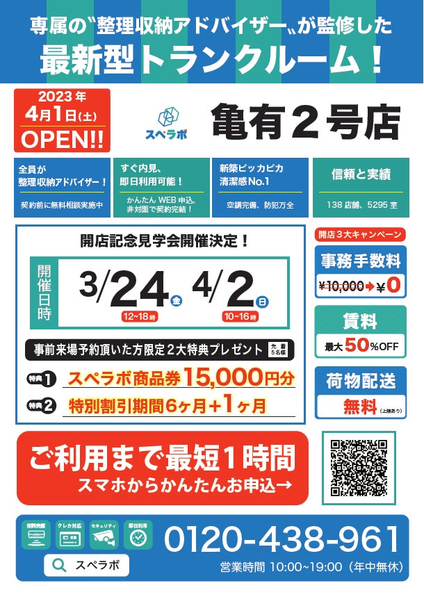 【亀有2号店/4月1日(土)オープン】見学から契約、解約まで完全非接触・非対面、お申し込みからご利用まで最短1時間!都内、大阪などにて絶賛運営中のトランクルーム【スペラボ】が亀有駅近くに出店!
