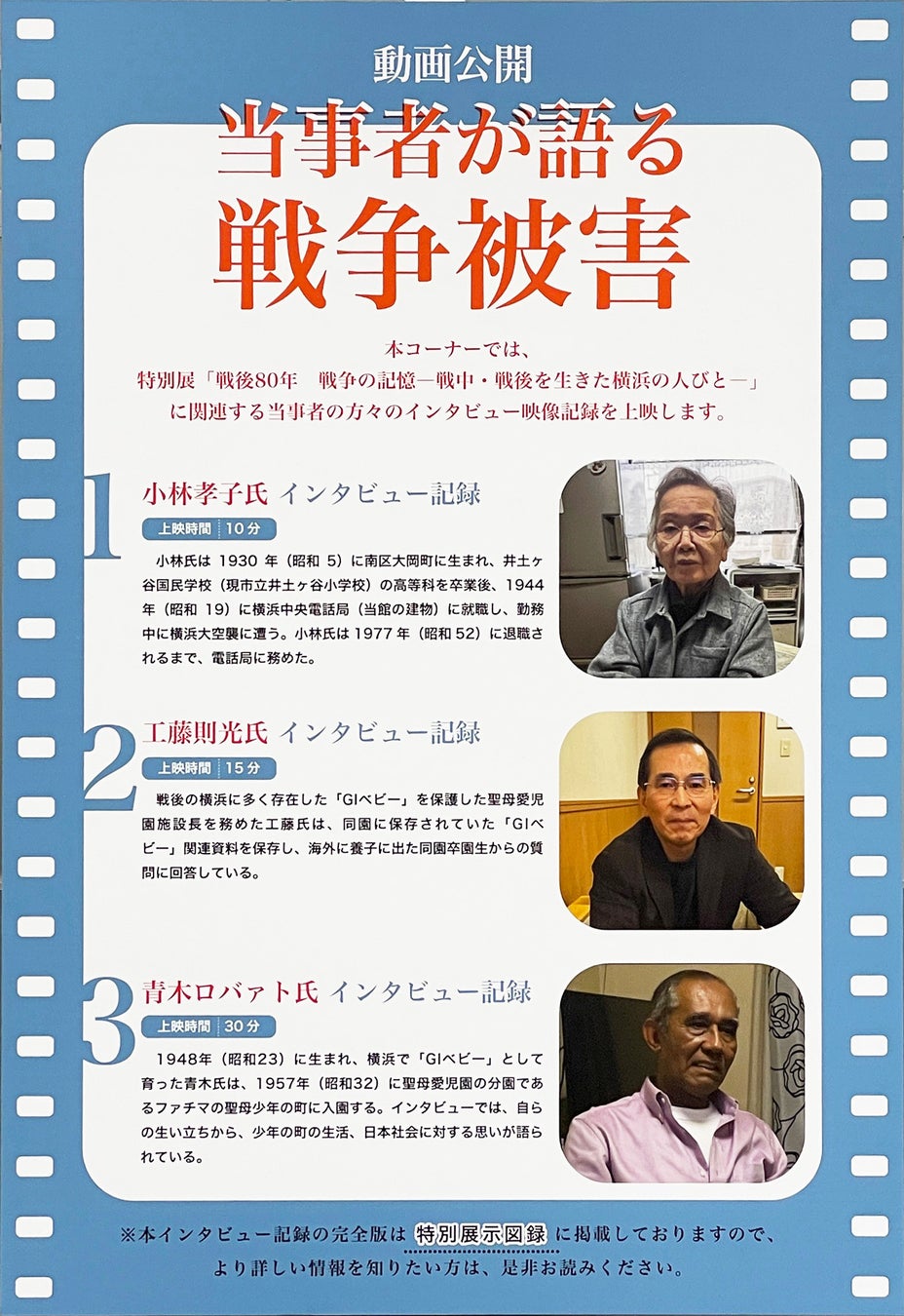 関連展示「動画公開 当事者が語る戦争被害」の開催