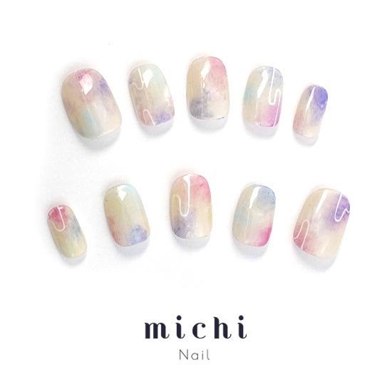 ■ふんわりタイダイ×ラインアートネイル