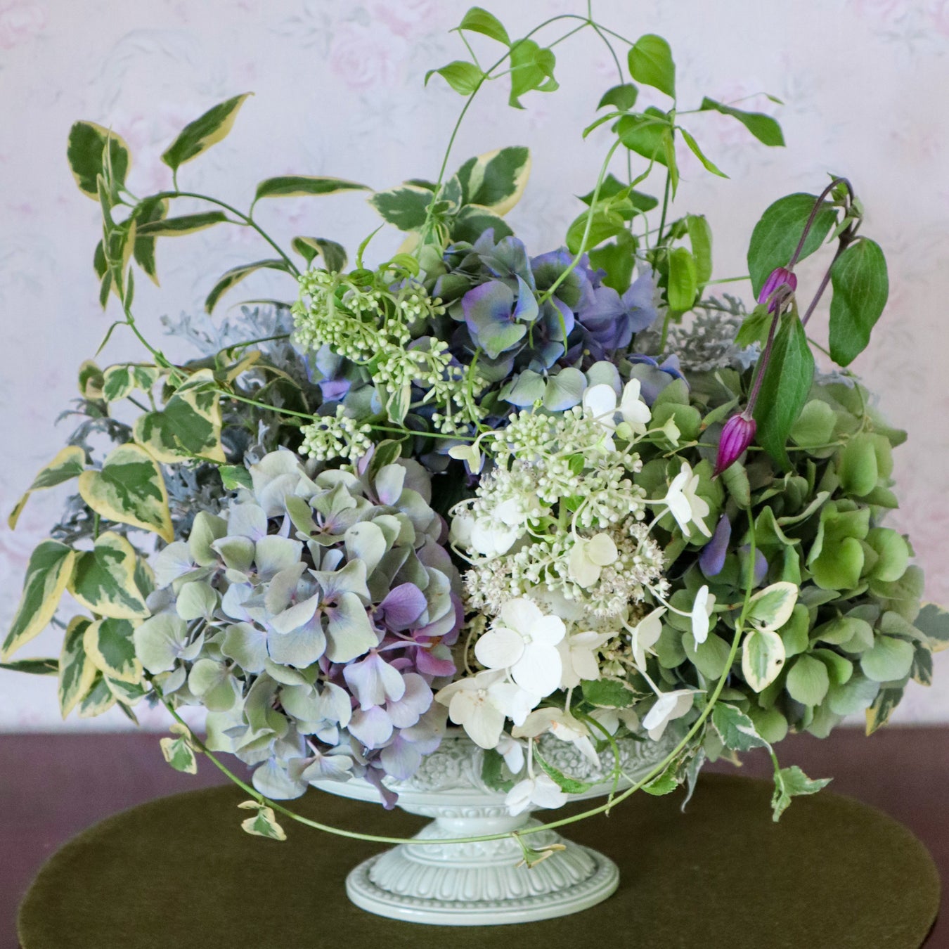 紫陽花を主役に、さわやかな季節のブルーとグリーンを集めて素敵なバスケットアレンジを作ります。ふんだんに花を使ったイングリッシュスタイルアレンジメントの特別一日講座です。