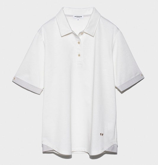 ストライプの別布使いをポイントにした、ベーシックなデザイン。吸汗速乾加工で、夏でも爽やかにご着用いただけます。 ※髙島屋先行販売 4月下旬発売予定