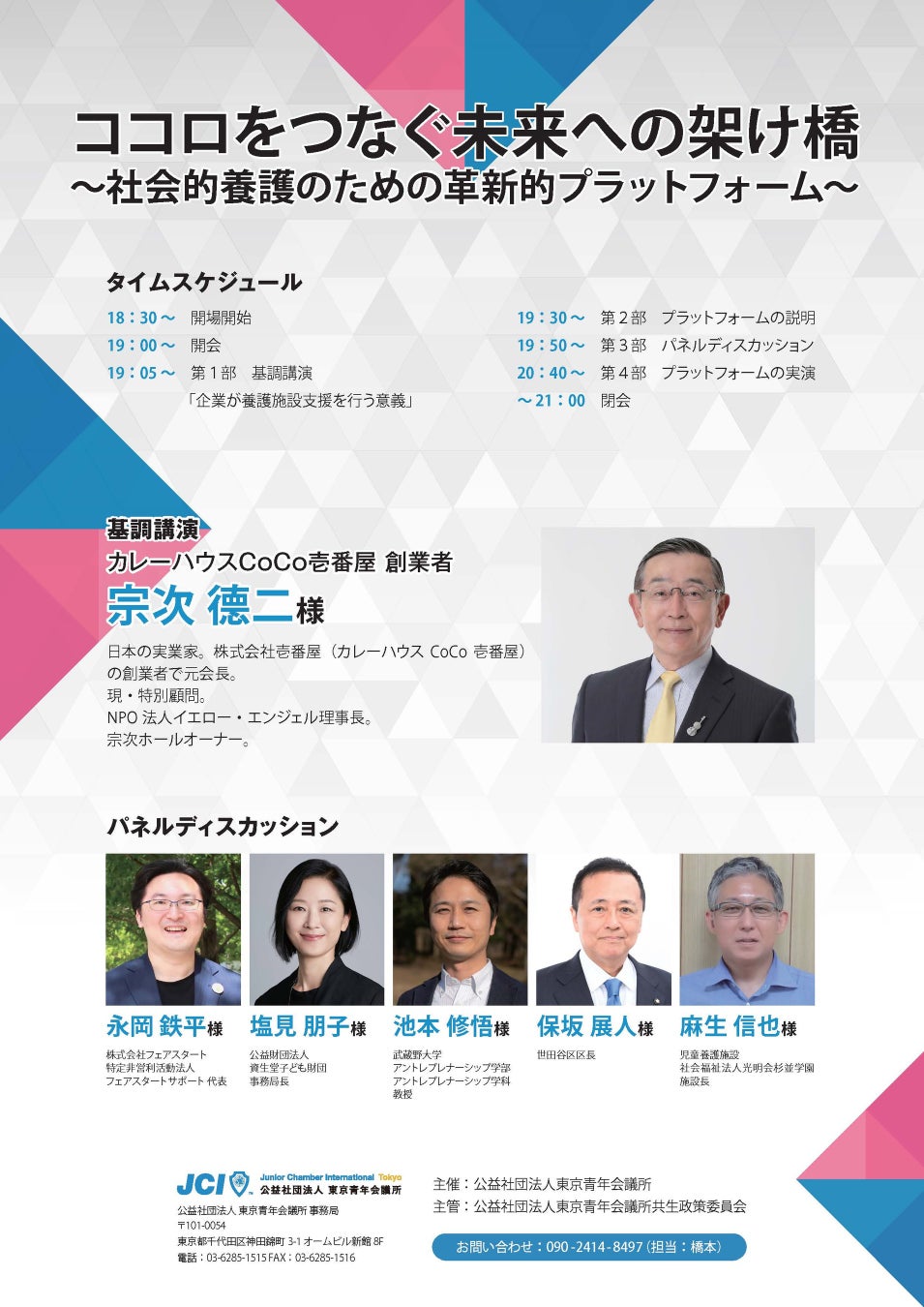 公益社団法人東京青年会議所は、2024年5月12日(水)TRUNK (HOTEL) ONDEN(東京都渋谷区)にて6月例会「ココロをつなぐ未来への架け橋~社会的養護のための革新的プラットフォーム~」を開催します。