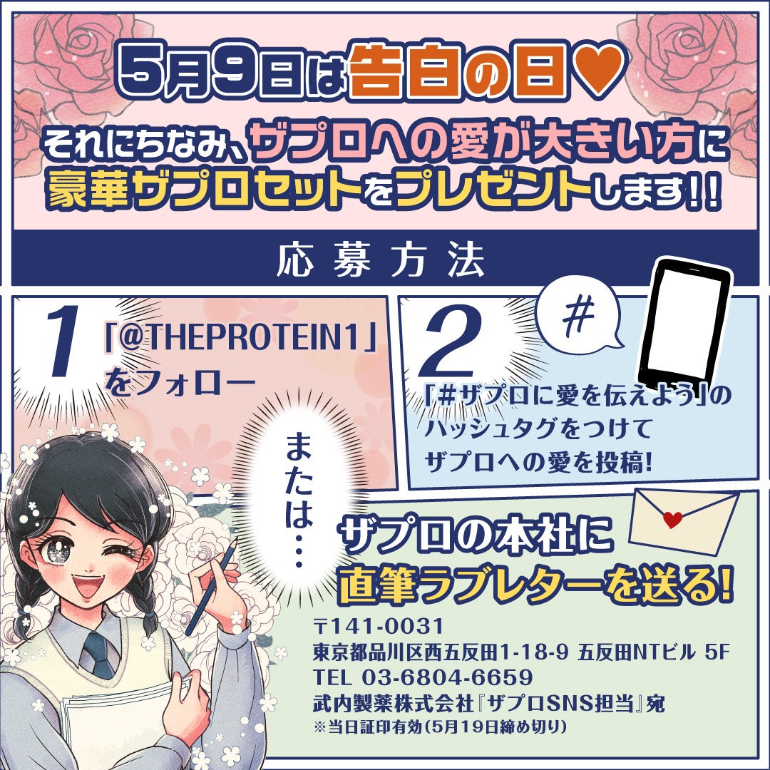 累計販売数50万個突破の THE PROTEIN(通称:ザプロ)から5月9日の「告白の日」に愛を伝えるキャンペーンを開催!!