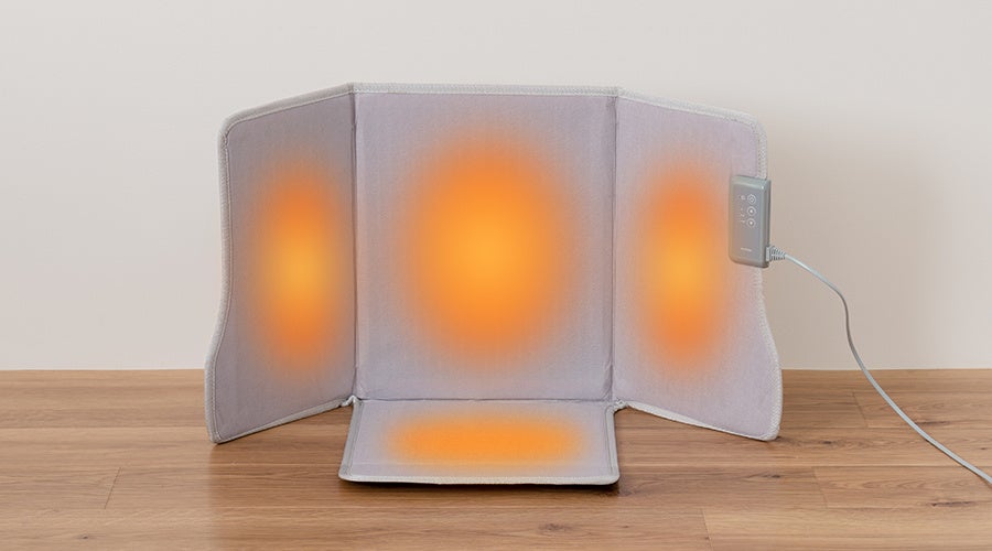 冷えがちな足先やふくらはぎをダイレクトに温める「折りたたみパネルウォーマー」は、4面に遠赤外線ヒーターを設置し、即温を実現。簡単に持ち運べて使える利便性と、エコで省エネな設計で家計に優しい点も魅力。