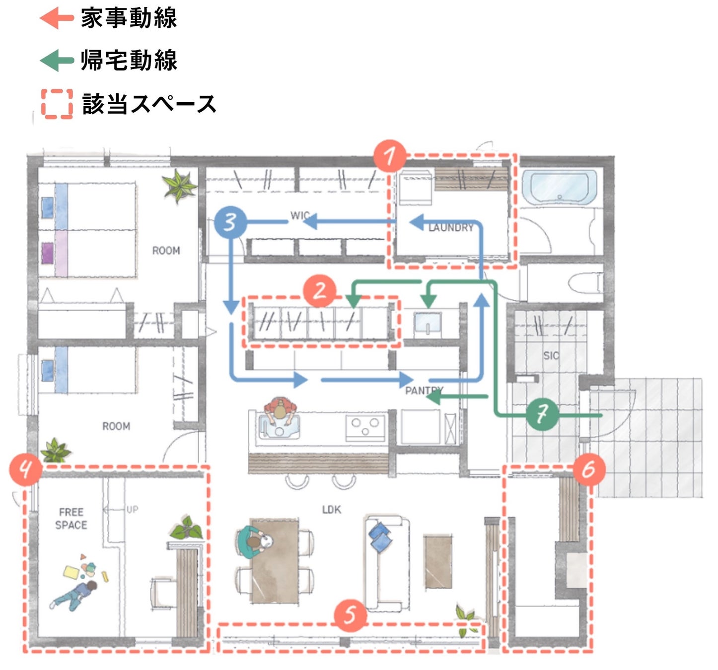 「料理」「洗濯」「掃除」をスムーズに行うことができるストレスフリーな回遊動線