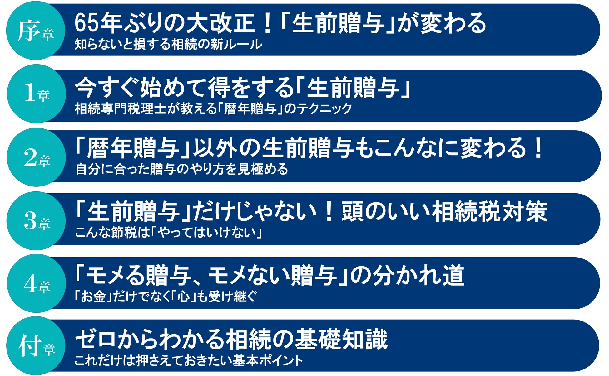 本書では、詳しい変更内容やうまいやり方、その他の変更点について、相続専門税理士が徹底解説。一番得する「生前贈与」の新常識をまとめました。