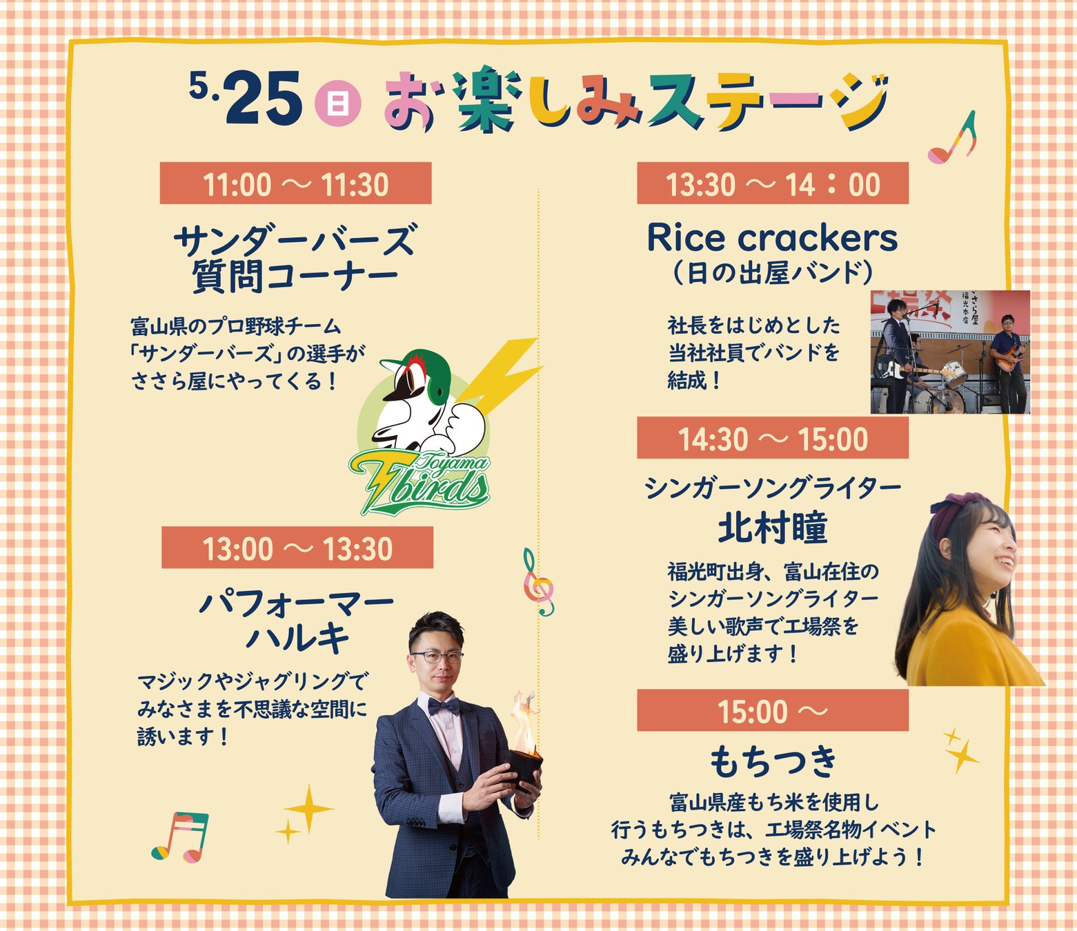 日の出屋製菓産業 半年に1度の大型イベント【ささら屋福光本店 春の工場祭】毎日餅つきイベントや最終日はお楽しみステージを開催! 2025年5月22日(木)~5月25日(日)