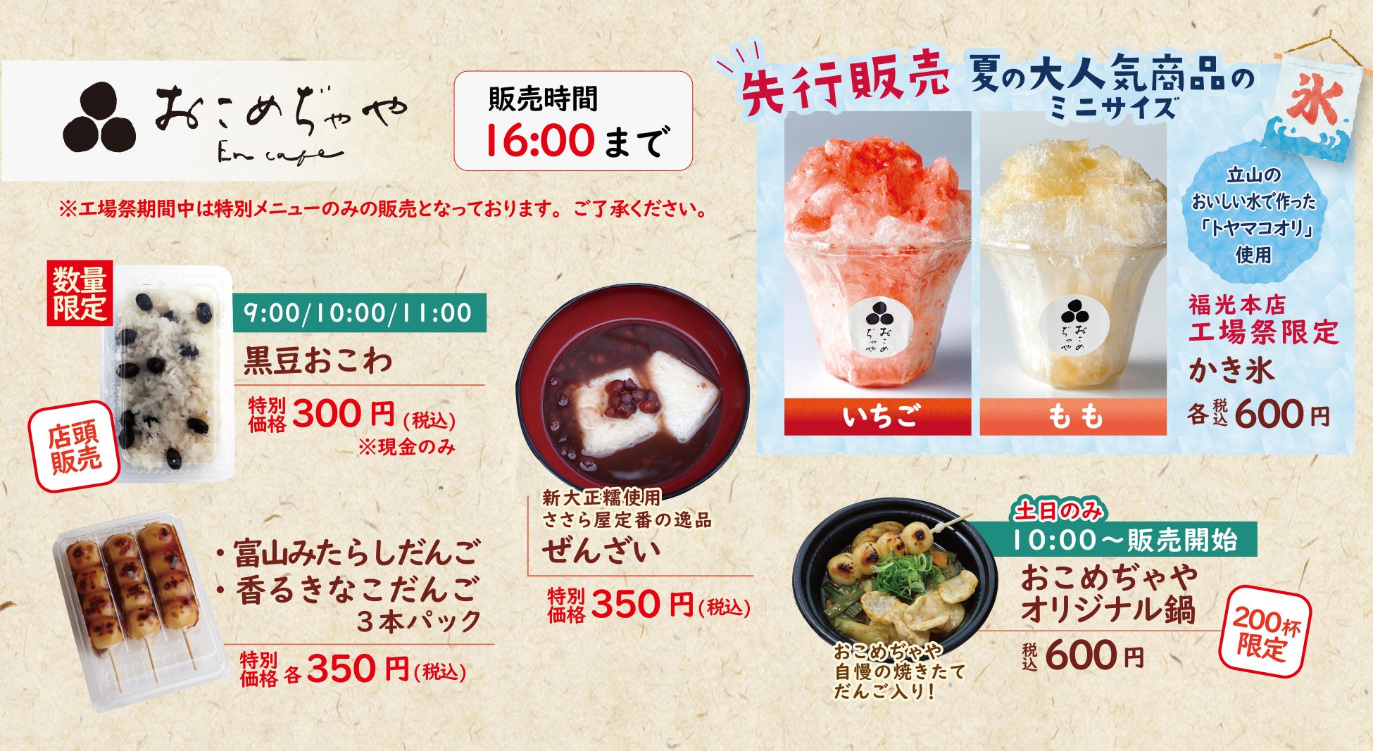 その他にも、先行発売のミニサイズかき氷やぜんざい販売など、特別メニューが盛りだくさん!