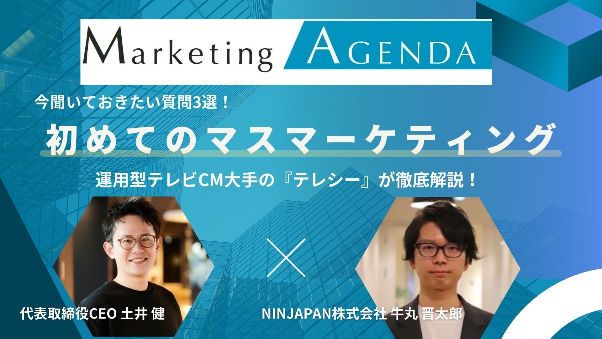 5月25日(木)からは、テレシー代表 土井 健が登壇いたします。本セッションでは、いま急成長中のAbuild就活を運営するNINJAPANのマーケティングマネージャーの牛丸氏をお招きして、土井に対して、初めてマスマーケティングをする際に聞きたい質問3選を投げかけていただきます。