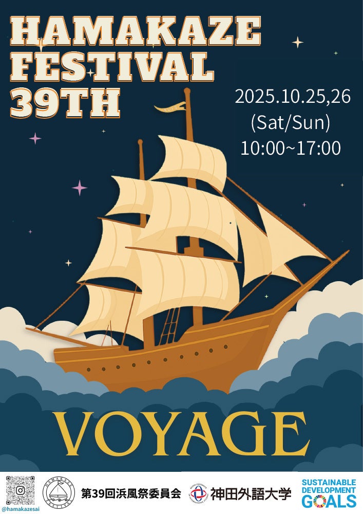神田外語大学(千葉市美浜区/学長:宮内孝久)は、2025年10月25日(土)・26日(日)の2日間、学園祭「第39回浜風祭」を開催します。本学ならではの国際色豊かな催しや多彩な文化体験を通して、学生が日頃の学びを発信する学園祭です。今年のテーマは「Voyage」。「旅」や「航海」を意味するこの言葉には、浜風祭という名の旅が来場者にとって特別な思い出となり、関わるすべての方が“乗組員”として新たな航海に出発するような体験となることを願う気持ちが込められています。本学は、世界の言語と文化を理解し、柔軟な心でコミュニケーションできる人材の育成をミッションとして掲げています。学園祭においても、その理念を体現し、地域社会とともに多文化共生を推進しています。