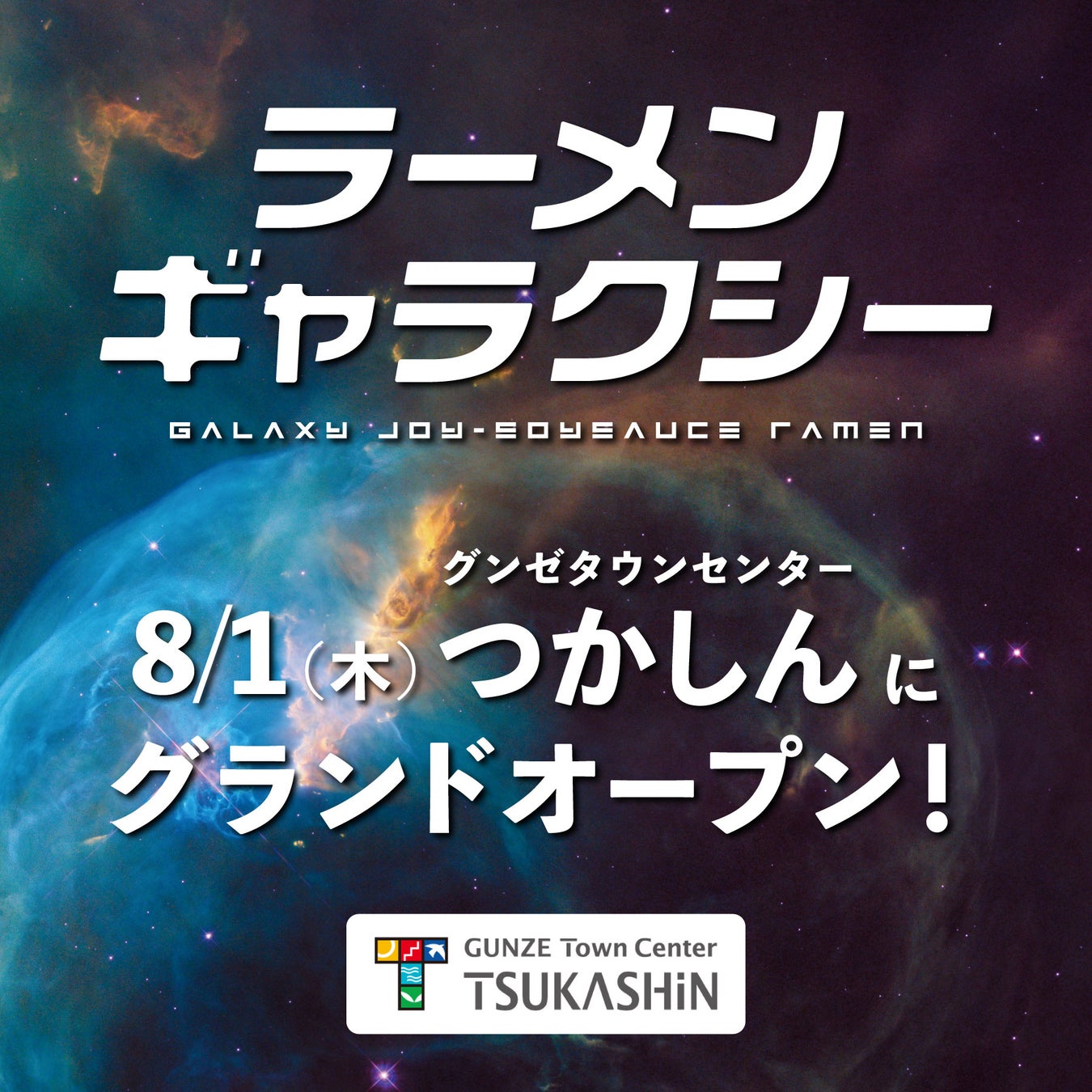 大阪行列No.1ラーメン店「人類みな麺類」を運営するUNCHI株式会社(本社:大阪市淀川区、代表取締役:松村貴大)は、「ラーメンギャラクシー」の2号店を8月1日(木)11時に尼崎市塚口「グンゼタウンセンターつかしん にしまち1F」でグランドオープンいたします。ラーメンギャラクシーはワクワクと感動をお届けする「銀河系醤油らーめん専門店」です。
