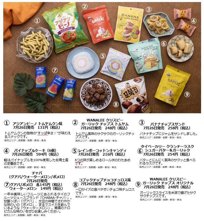 トムヤンクン風味の個性的なスナックからSNS映えするかわいいレインボー綿あめ、台湾みやげの定番パイナップルケーキ、南国フルーツジュースまで…気になるアレ・コレを揃えてアジアンお菓子パーティーをしませんか?