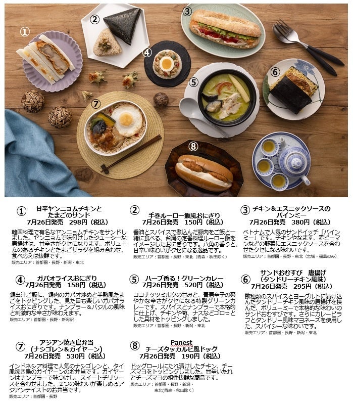 本格的なグリーンカレー、ナシゴレン、ガイヤーン、バインミーだけでなく、アジアングルメが手軽に食べられるサンドイッチやおにぎりに変身。朝・昼・夜食べたくなるラインナップです。