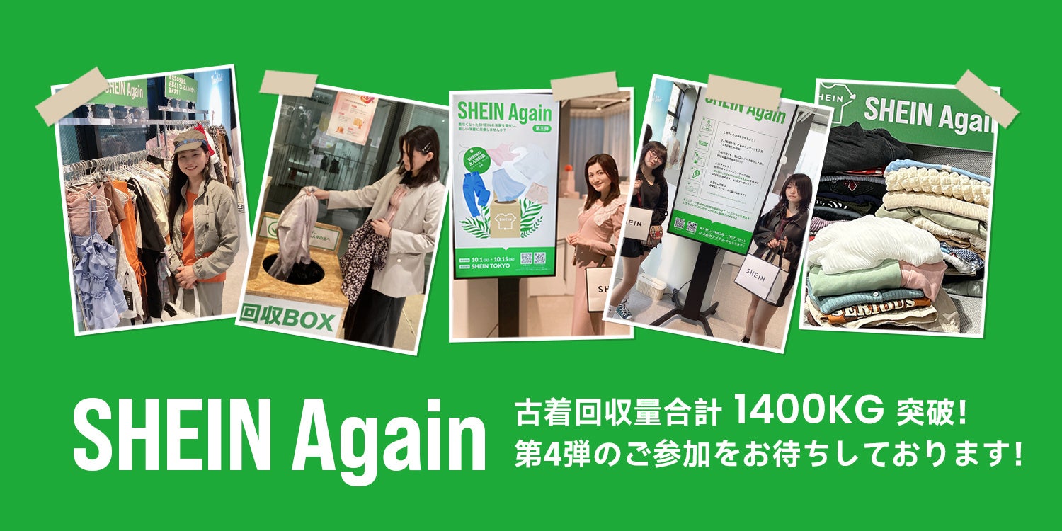 「SHEIN TOKYO」では、今年の7月より開始した古着交換・寄付キャンペーン『#SHEIN Again』として、古着回収を行い、世界各国の支援に活用できるよう、NPO法人団体との取組みを実施しています。ぜひこの機会にチェックしてみてください!