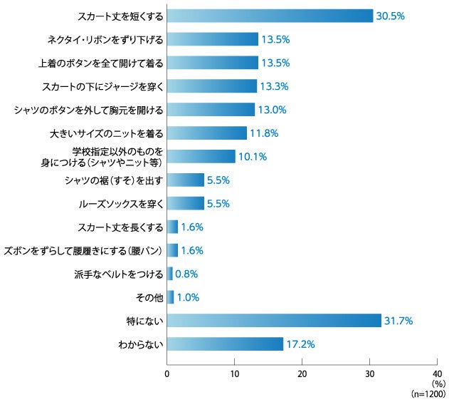 ●「スカート丈を短くする」が多い一方で「特にない」という回答も3割を占める