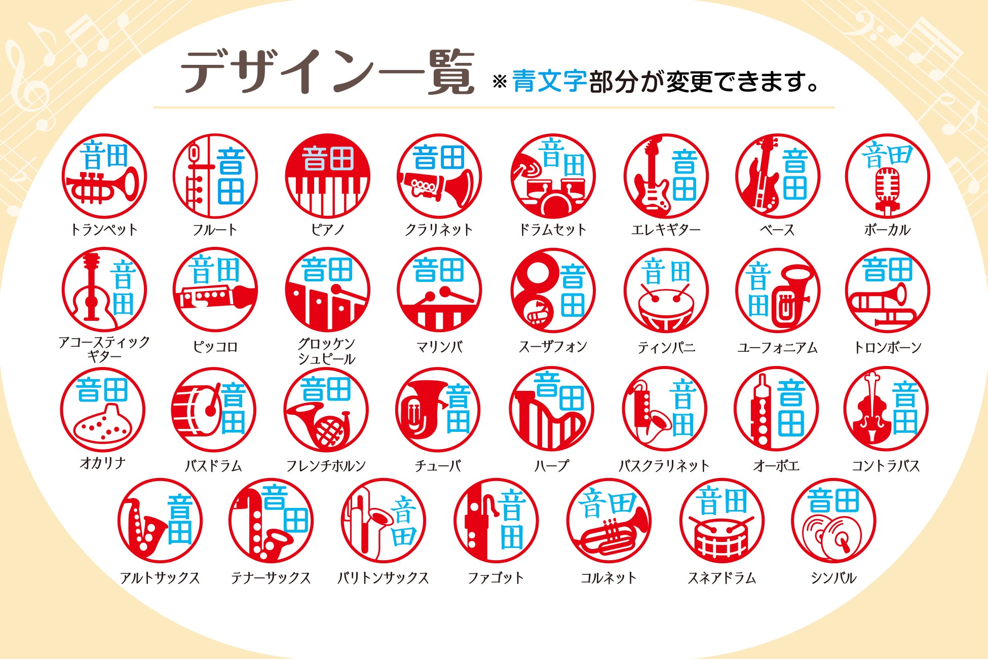 “名前入り×楽器イラスト”のオリジナルはんこです。