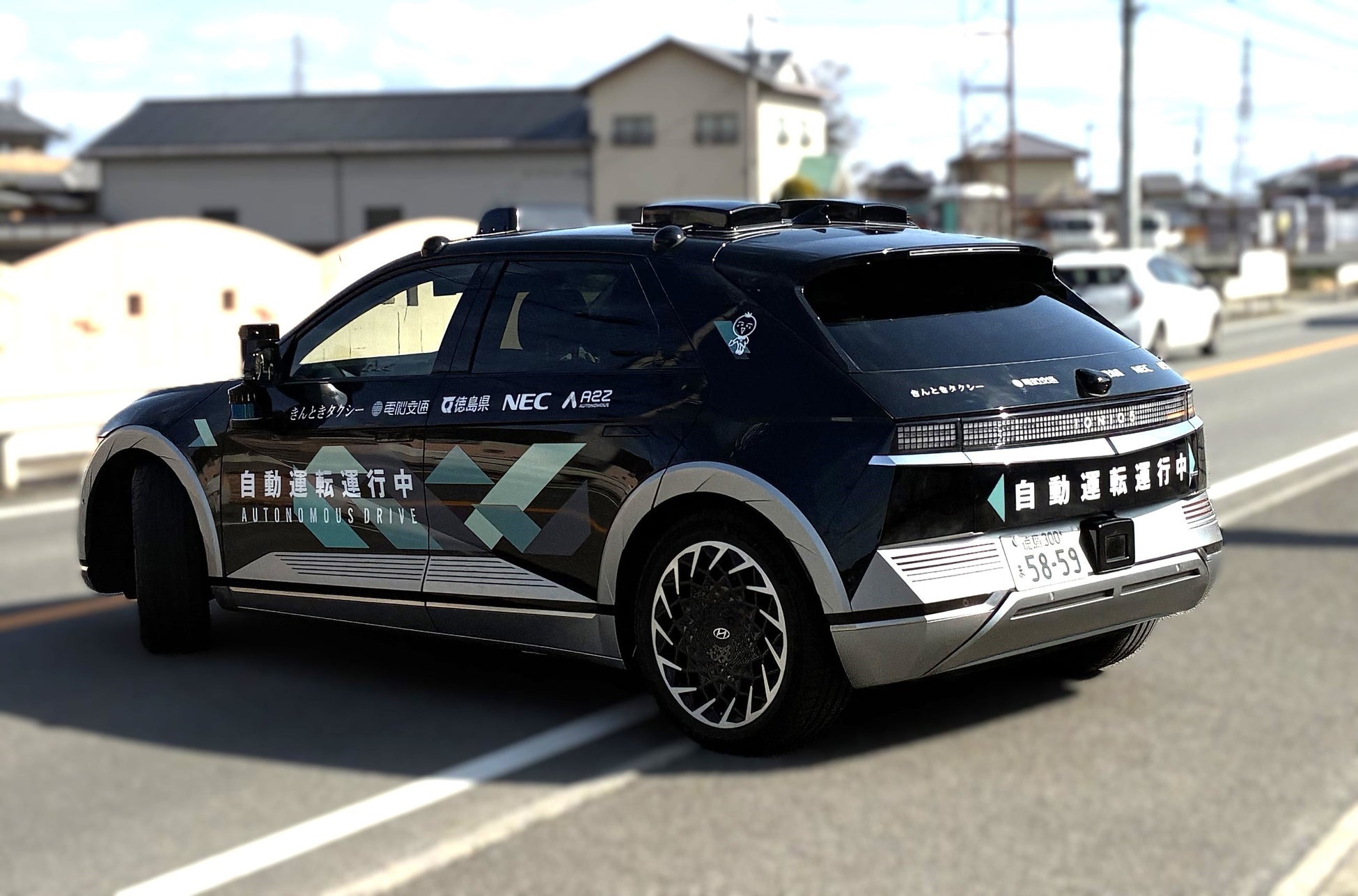 実証では、NECの自動運転サービスプラットフォーム、電脳交通の配車システム「DS」、そしてA2Zの自動運転管制システムを連携させた統合システムの活用により、既存のタクシーオペレーションを大きく変更することなく、自動運転車両を運行に組み込む体制を実現しています。なお、本実証は、将来的に徳島県において、特定条件下における完全自動運転が可能な「レベル4」タクシーの導入を視野に入れた取組みであり、今回はドライバーが乗車し、常に手動介入が可能な自動運転「レベル2」となります。