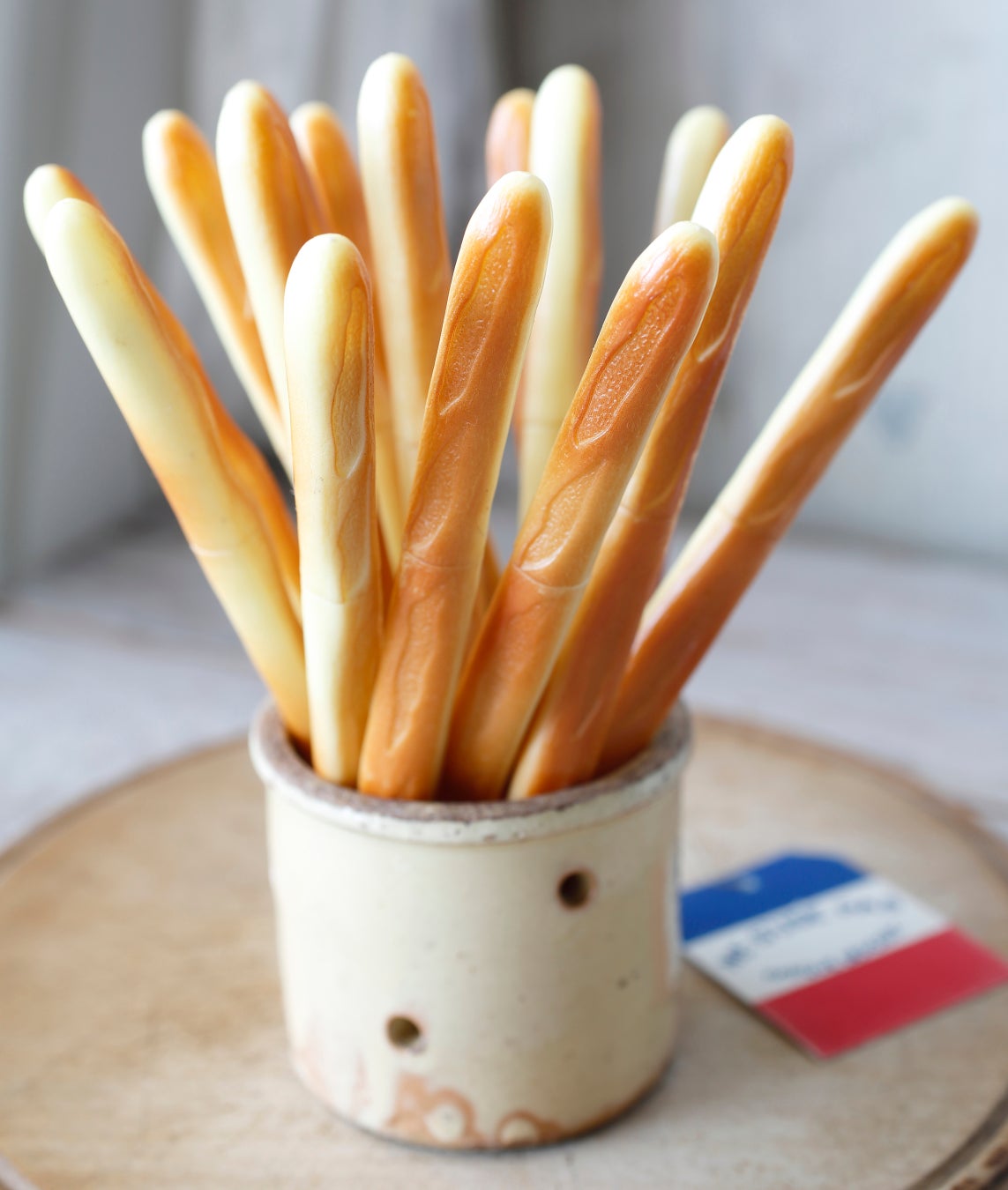 お買い上げの方の中から抽選で10名様に、水野麻紀さんが撮影のために訪れたパリで入手したフランスパンのボールペンをプレゼント。詳しくは本カレンダーのアンケートページをご覧ください。