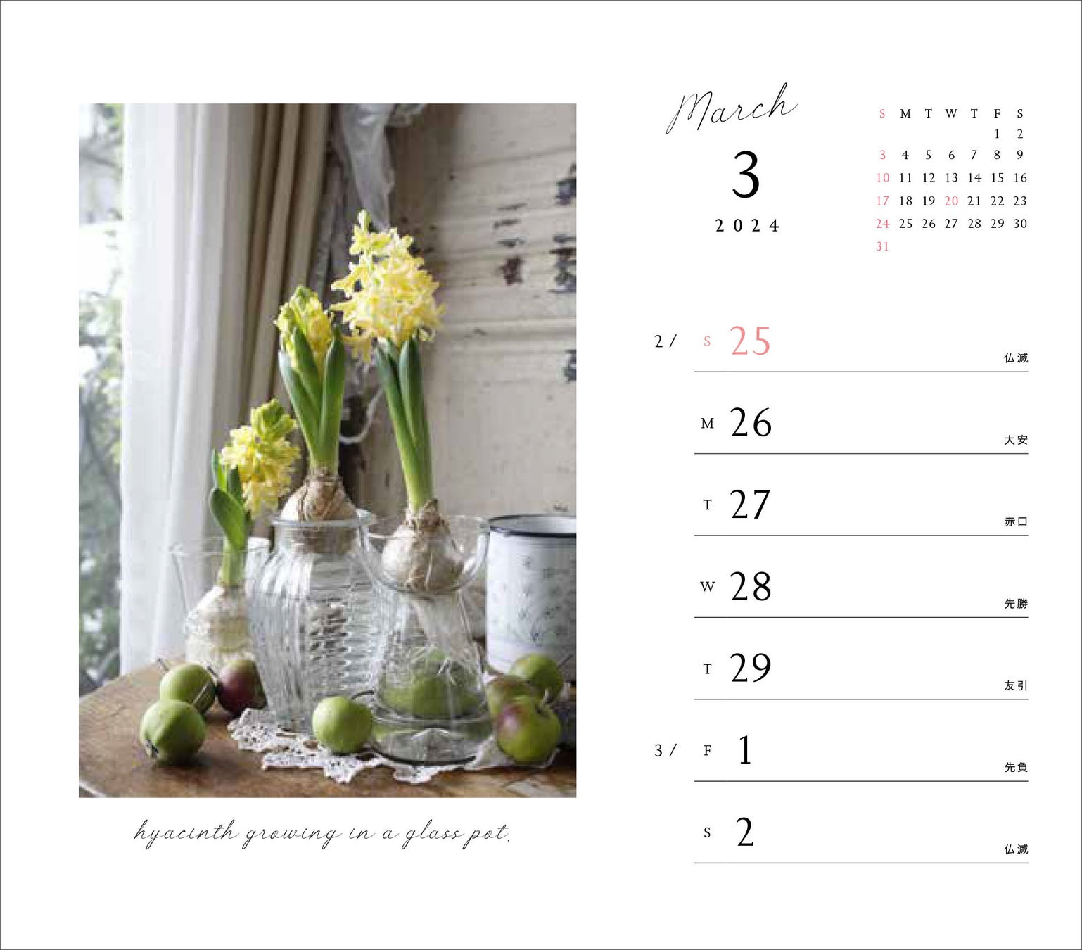 「カレンダーとしても、インテリアのスタイリングとしてもお役に立てることを願って作りました。暮らしの空間をさり気なく、キリッと際立たせてくれるデザインです。」