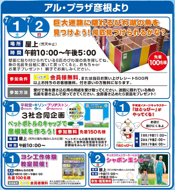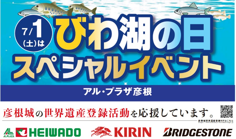 ➤HKB は彦根城の世界遺産登録活動を応援します! 7/1(土)・2(日) アル・プラザ彦根で「びわ湖の日」に合わせてイベントを開催! 平和堂・キリン・ブリヂストン「彦根発 笑顔いっぱいプロジェクト」(2023/6/23 配信)