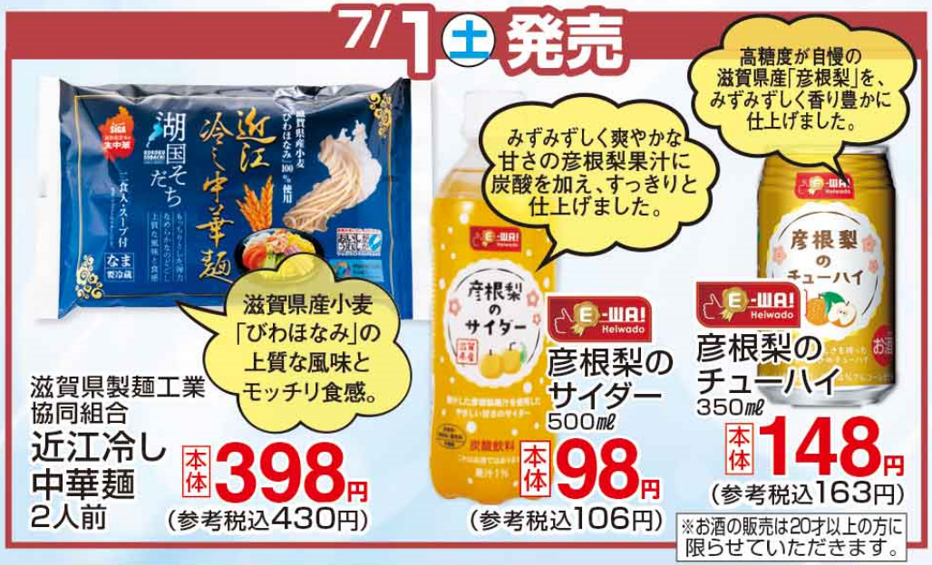 ・販売店舗:滋賀県内「アル・プラザ」、「平和堂」、「フレンドマート」70店舗