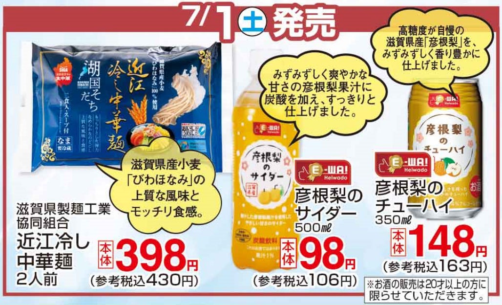 ➤〈平和堂E-WA!新商品〉【期間・数量限定】彦根梨のサイダー&チューハイ(2023/6/28 配信)