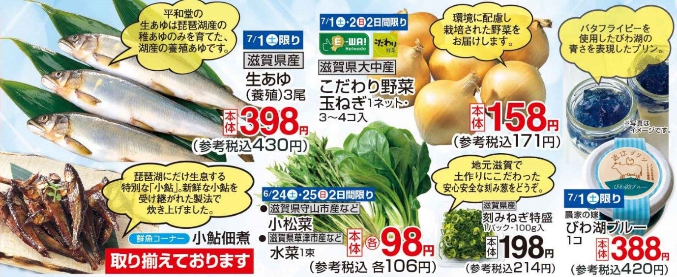 ※アル・プラザ等の大型店でお取り扱いしております(ビバシティ平和堂を除く)。