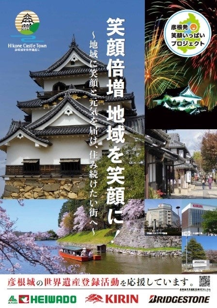 HKBの3社は、2023年度より、「笑顔倍増 地域を笑顔に!~地域に笑顔と元気を届け、住み続けたい街へ~」として、彦根城の世界遺産登録活動を応援する取り組みを開始します。