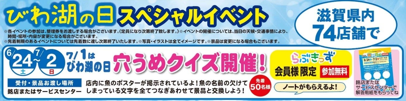 ■<滋賀県内74店舗> 7/1(土)はびわ湖の日 穴埋めクイズ開催!