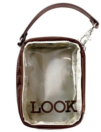 「LOOK」のロゴがデザインされた取っ手付きポーチです。中が見える仕様なので、好きなものをたくさんつめ込んで、見せて楽しめます。