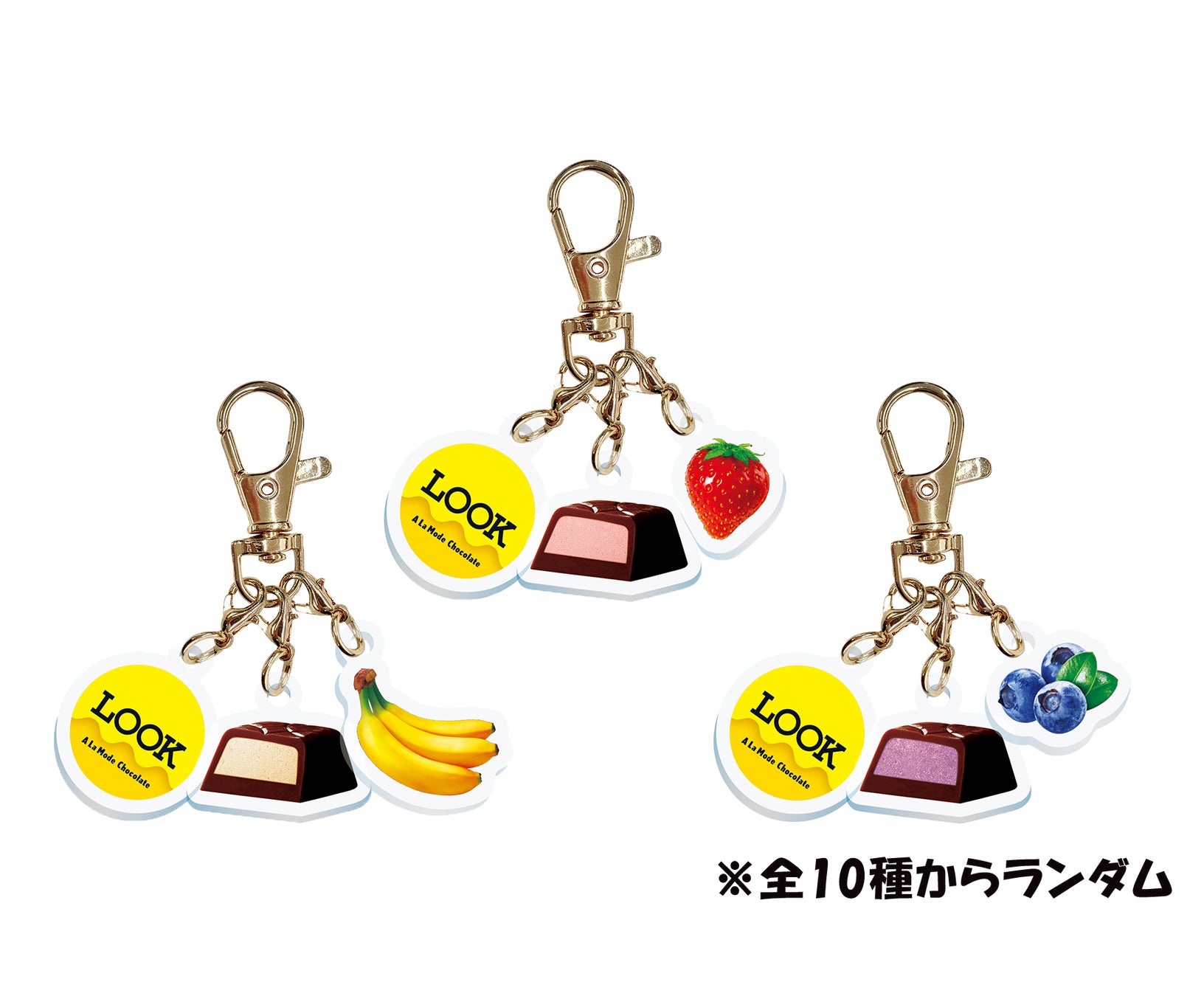 「LOOK」のロゴやチョコレートがデザインされた3連チャーム。全10種ランダムで、どのデザインが出るかはお楽しみです!