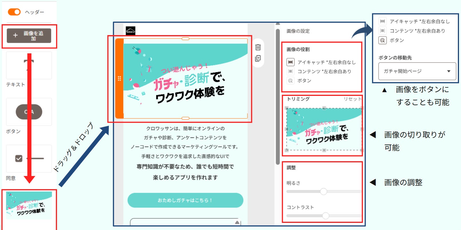 「クロワッサン」は、企業向けにオンラインガチャ・診断コンテンツを作成できるツールです。