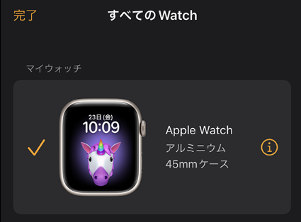 Step2:「すべてのWatch」からApple Watchを選択し、右側の「i」アイコンをタップします。