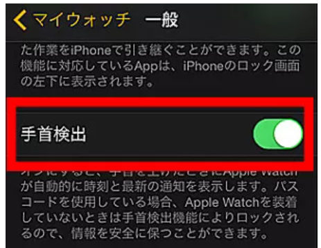 Step2:「一般」を選び「」手首検出の項目をタップしてオンに切り替えます。