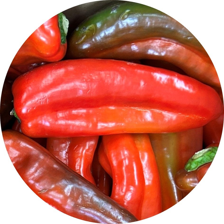 「とんがりパワー」とは、ピーマンの品種のひとつで、厚く甘味のある果肉と、果長約15cm、直径約4cmという通常の倍以上の大きさが特長です。水分率が高く、苦味やピーマン独特の香りが控えめで、食べやすい味わいです。ピーマンは完熟すると赤く色付き、甘味も増すのですが、緑色であるというイメージから熟したものの多くは市場には流通せず、廃棄されていました。サラダカフェでは、そんな赤色の「とんがりパワー」を活用し、今回の新商品を開発しました。美味しく食品ロスの削減に貢献します。