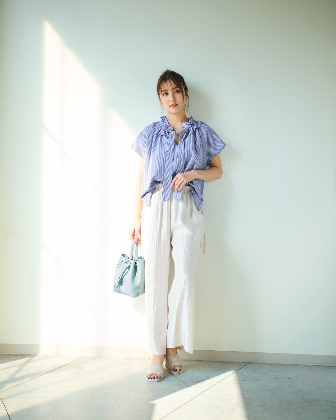 Blouse ¥15,400 / Pants ¥19,800 / Bag ¥15,400 / Sandals ¥17,600