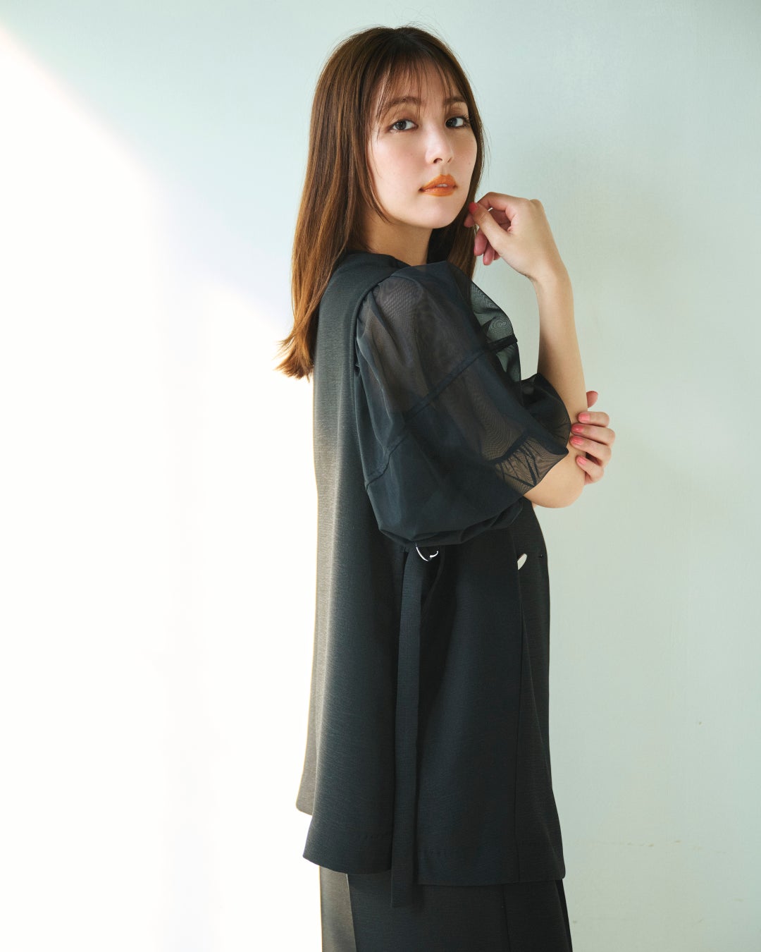 機能素材とシアースリーブが涼しげな春夏のオールブラック