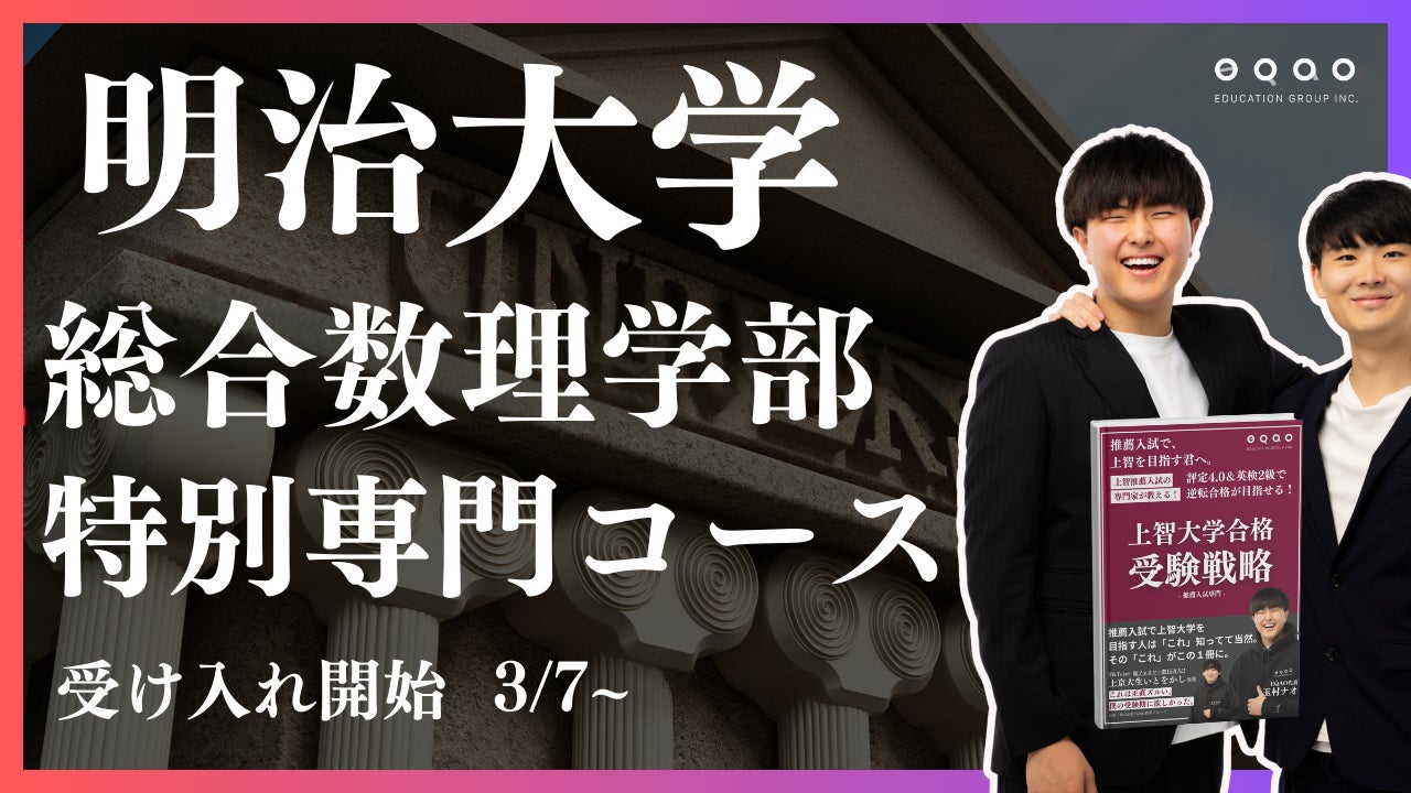 EQAOが明治大学総合数理学部の合格を目指す受験生を全力でサポートします!