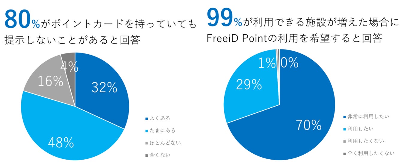また、普段からポイントカードを持っていても提示しない人は80%にも上ることがわかり、顔認証によるポイントシステム「FreeiD Point」の利用に対して好意的と回答した人は99%という非常に高い結果となりました。