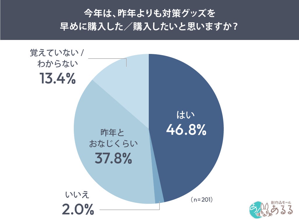 「今年は昨年よりも対策グッズを早めに購入した、または購入したいか」を、尋ねたところ、