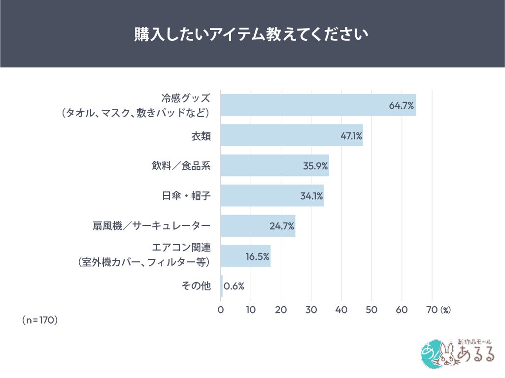 購入した層と同様に、冷感グッズ(64.7%)が、多く挙げられました。