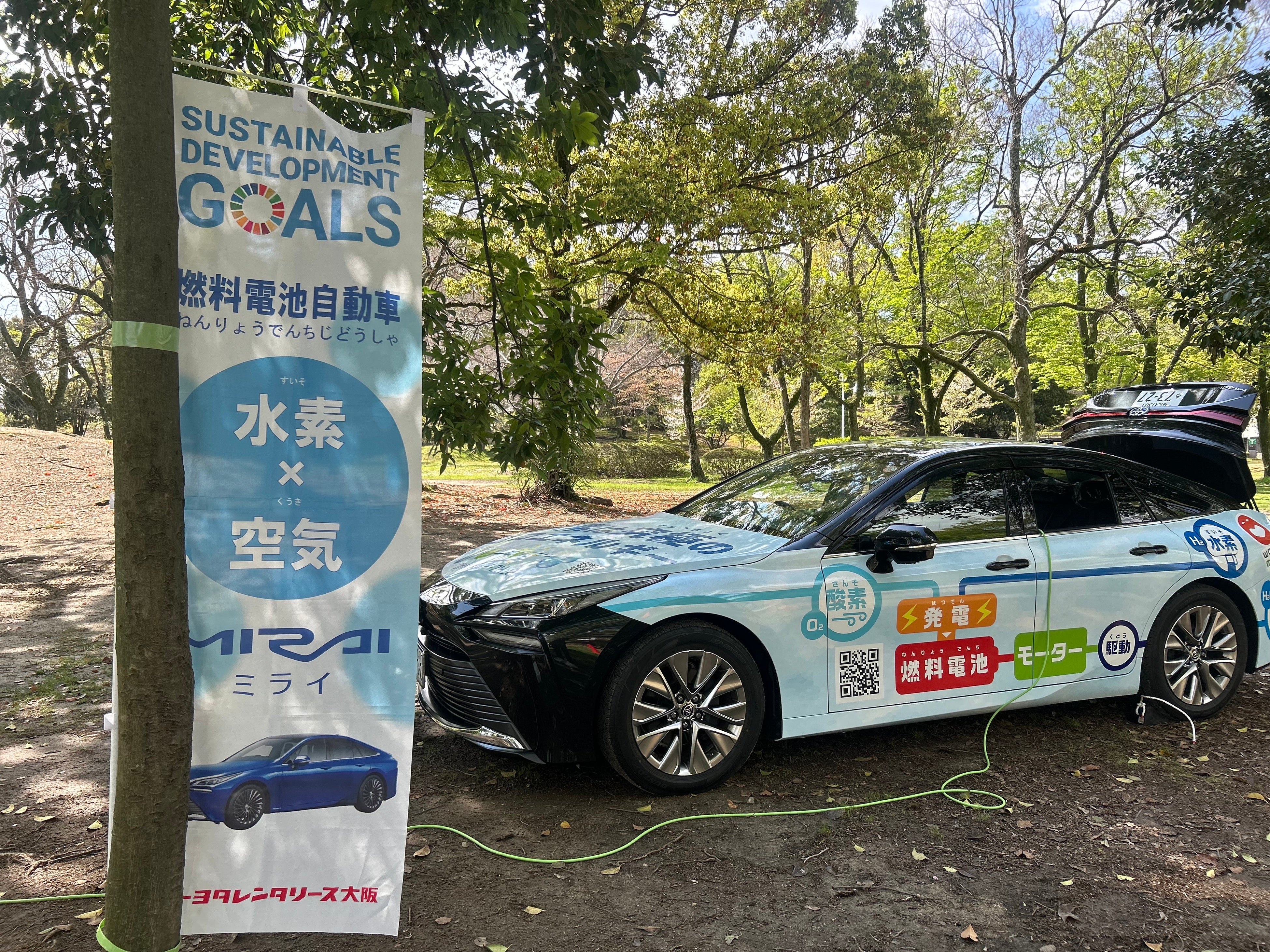 また、当日のイベントは、トヨタレンタリース大阪様のCO2を排出しない「水素」を燃料とする「MIRAI」の給電により実施されました。