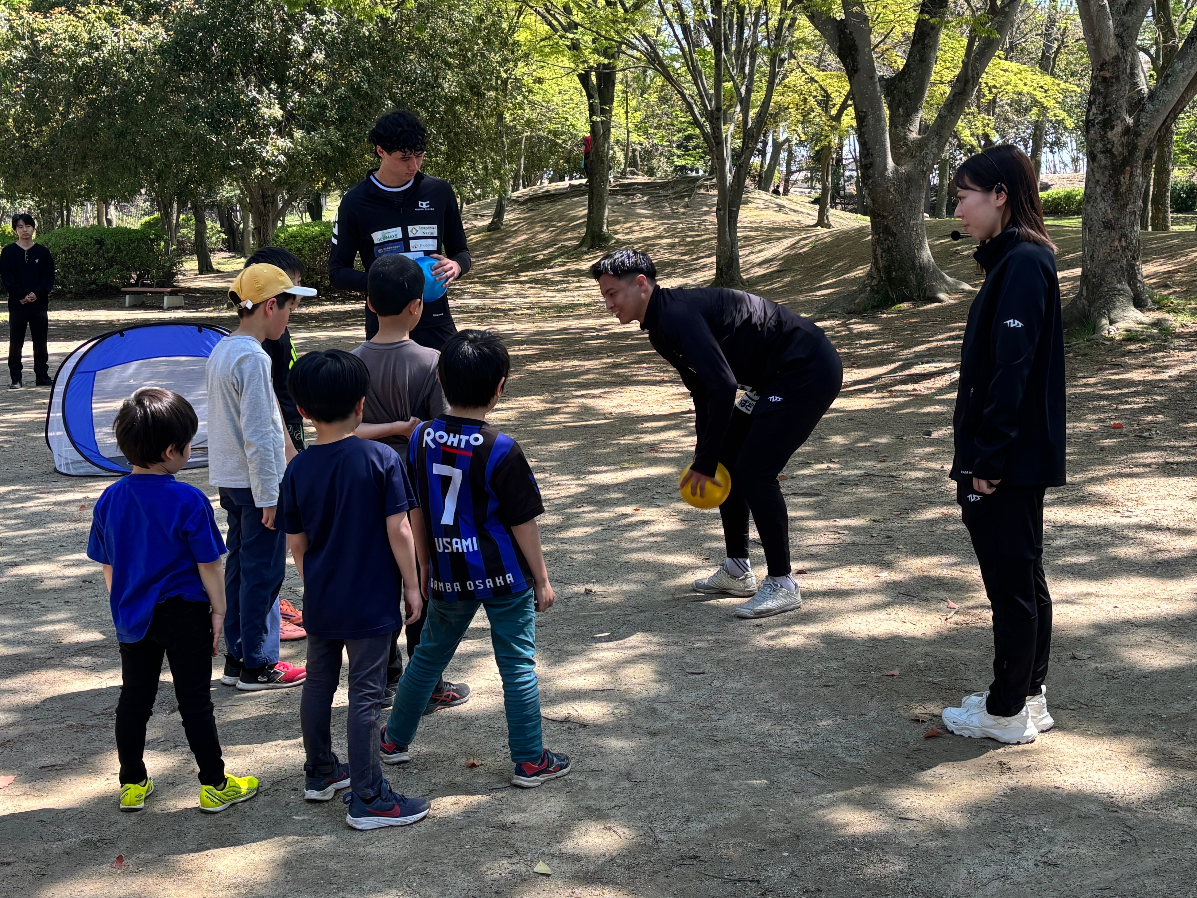 後半は、Osaka City SCによるキッズサッカー体験を実施。交通安全と絡めた、信号×サッカーのミニゲームや、GKの動きを予測するPKチャレンジを実施しました。サッカーに初めて挑戦する子どもたちも、ボールを蹴ることを楽しみ、最後には「サッカーがもっと好きになった!」と話してくれました。