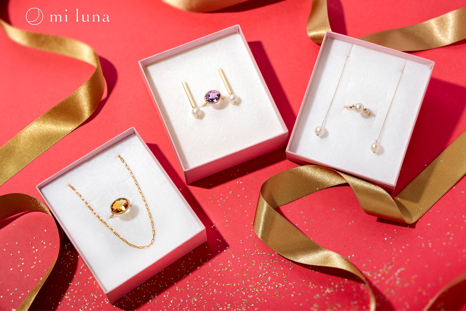 サステナブルジュエリー「mi luna(ミ・ルーナ)」 ホリデーシーズンを彩る天然石やパールを使った3種のクリスマス限定セットを販売
